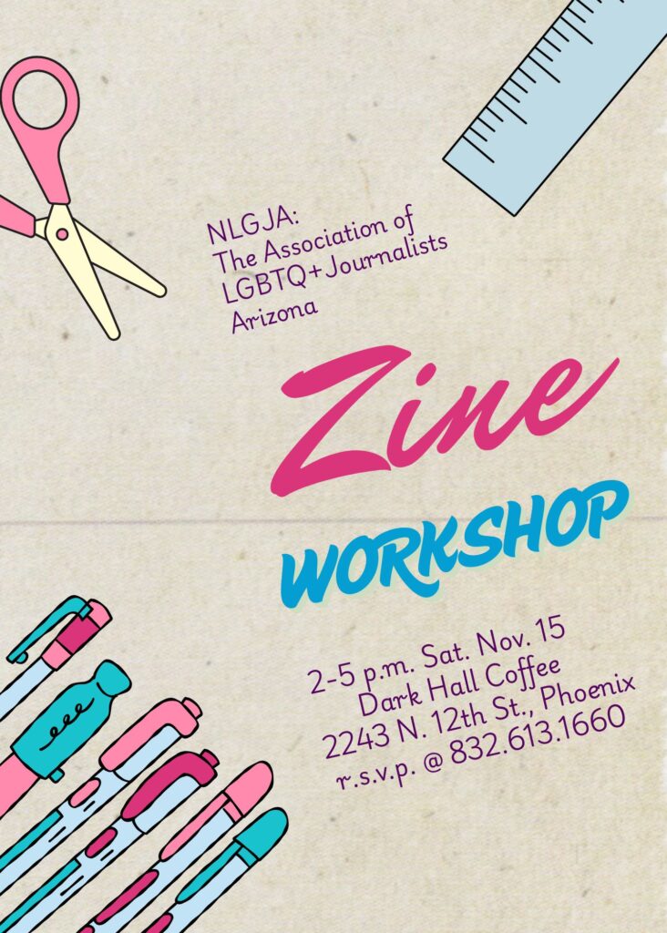 Our Arizona Chapter will be hosting a zine-making workshop at Dark Hall Coffee (2243 N. 12th St., Phoenix AZ.) RSVP by reaching out to 832-613-1660.
